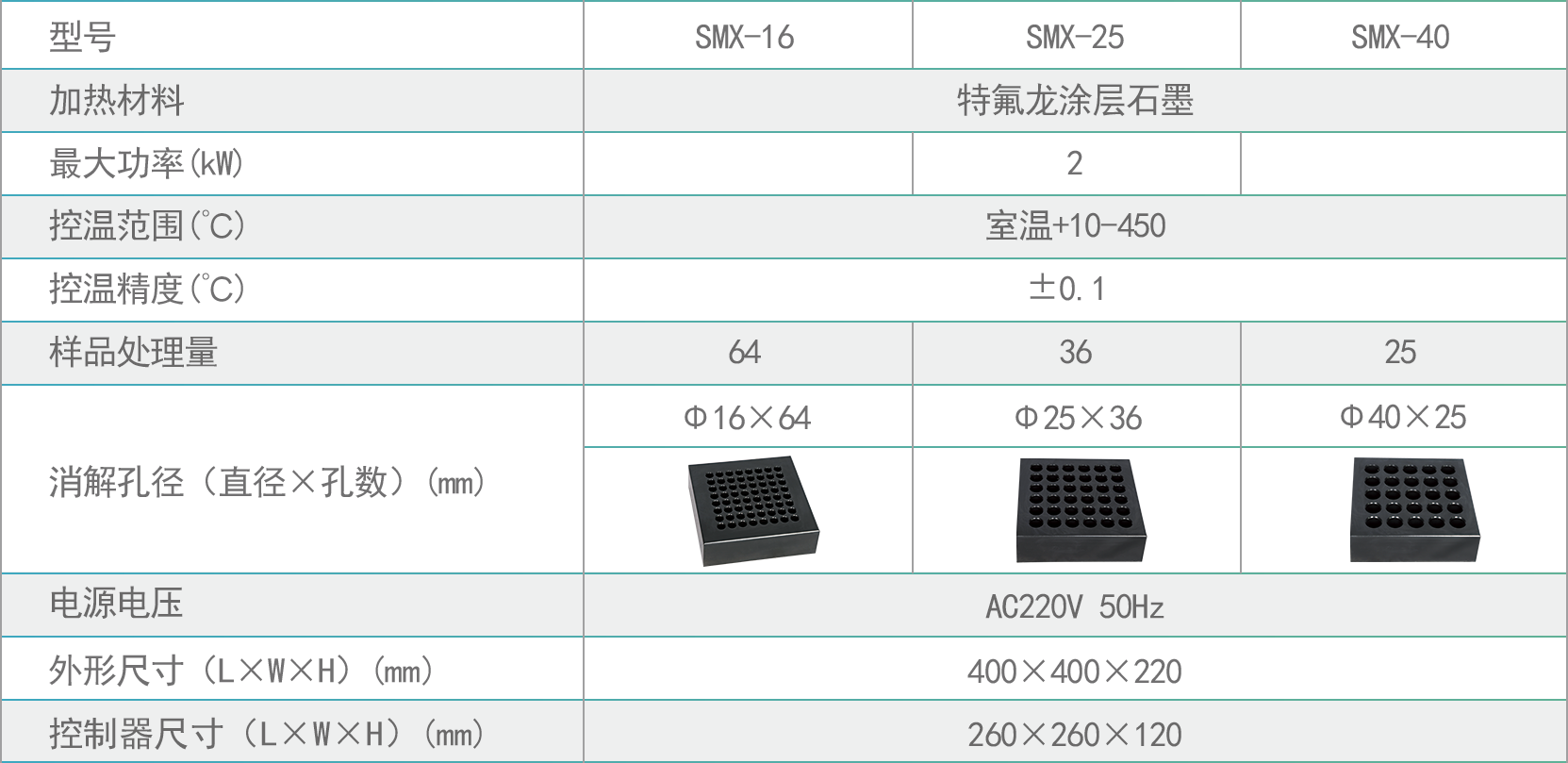 SMX系列石墨消解儀采用國際先進技術,一體化設計,具有消解快速、高效、節能、方便等優點,已成功用于環保、化工、食品、醫藥、生化等行業樣品前處理,同時可用于微波消解的預處理和趕酸處理,是原子吸收、原子熒光、ICP-AES等分析儀器的理想配套產品。