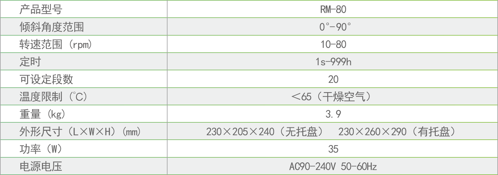 RM-80旋轉(zhuǎn)培養(yǎng)混勻器用于樣品的組織培養(yǎng),萃取,測(cè)定沉降率(包括各種血樣的化學(xué)測(cè)定),如:血樣混合、放射免疫、葡萄糖、蛋白質(zhì)、DNA、細(xì)胞、尿液、酶等濕化學(xué)分析,在生化、生物、細(xì)胞、免疫、化學(xué)、動(dòng)植物分析、臨床實(shí)驗(yàn)等諸多方面都有廣泛應(yīng)用。其主要特點(diǎn)是能夠勻速地長時(shí)間連續(xù)混合,它便于操作,轉(zhuǎn)盤的傾斜度可任意調(diào)節(jié)。它還可根據(jù)需要放置在恒溫箱中。